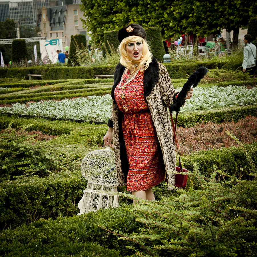 Au Mont des Arts, devenu pour l’occasion Parc BD, la Castafiore cherche vainement (mais drôlement) son perroquet Coco.