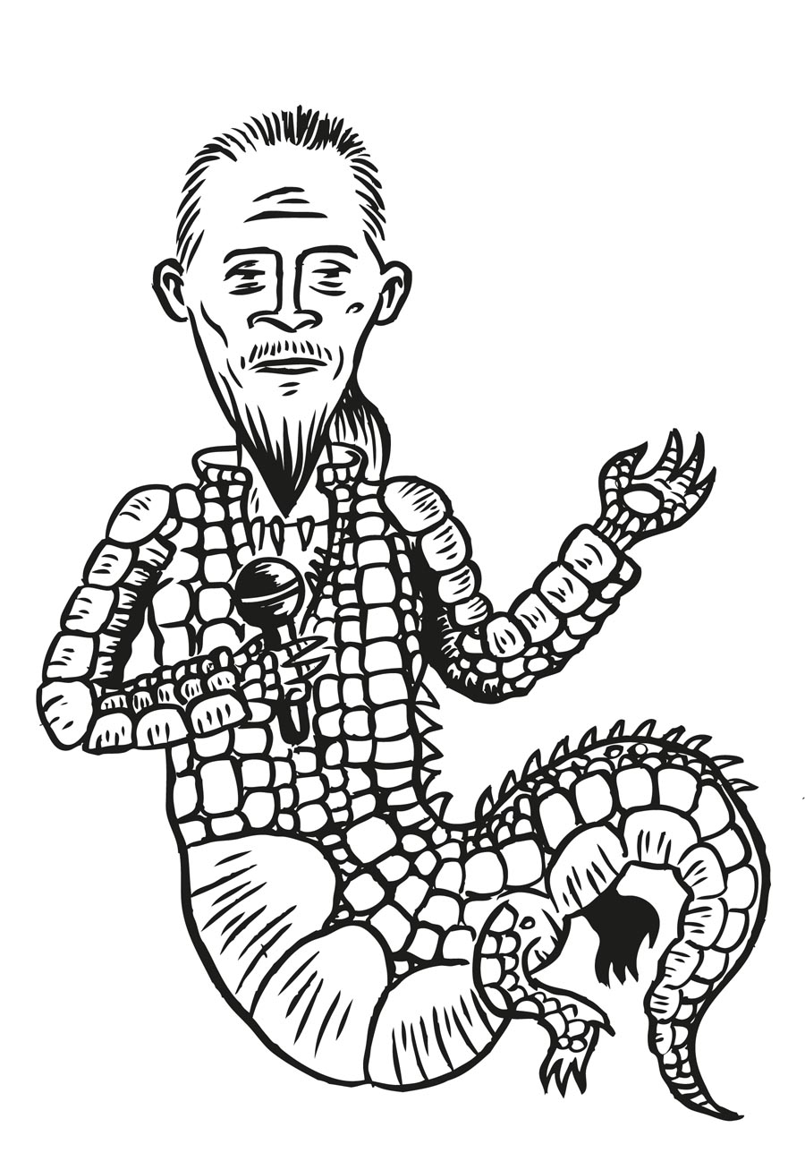 Illustration concoctée, après avoir vu Florent Pagny dans sa rutilante veste en croco, dans la version française de The Voice. Sur une idée de ma fille Alix.