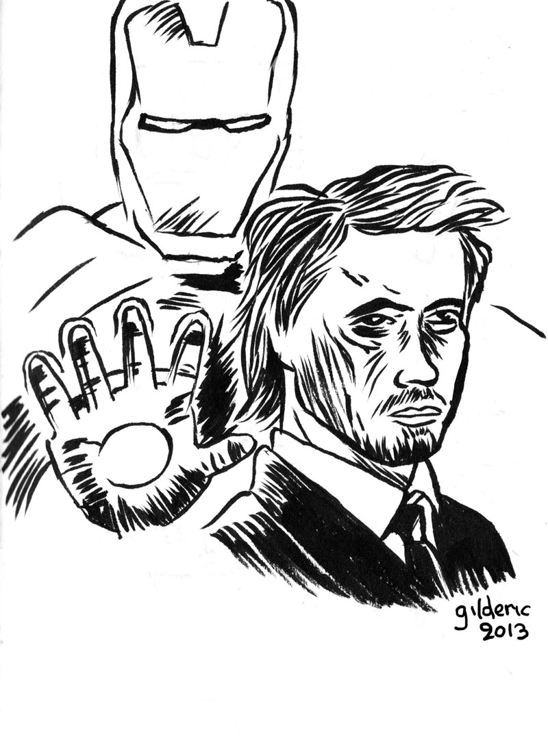 Ce dessin, tiré de mon carnet, est une recherche en vue d’une éventuelle planche de « Taupe Chef » featuring Iron Man. Un dessin rapide, directement à l’encre, d’après photo.