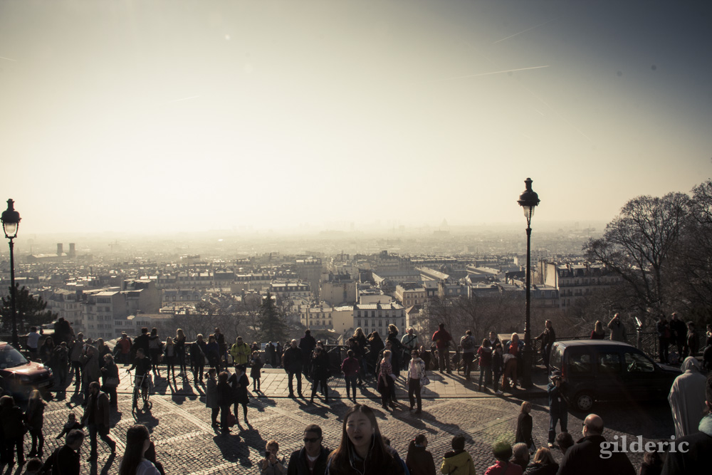 La déception s’est accumulée. Mais il y a la vue. Tourner le dos à la basilique et c’est le spectacle de Paris qui se déroule devant nous. Paris nimbée de brume, , qui s’étend sous la Butte.