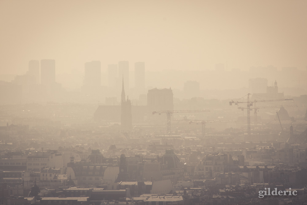 Le Paris panoramique est magnifique. Sous le ciel sans nuages, dans un léger manteau brumeux, les monuments se laissent deviner.