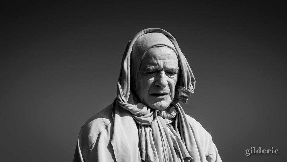 Une petite pièce et la statue s’anime . Le mime sourit. Se prête à la photo.