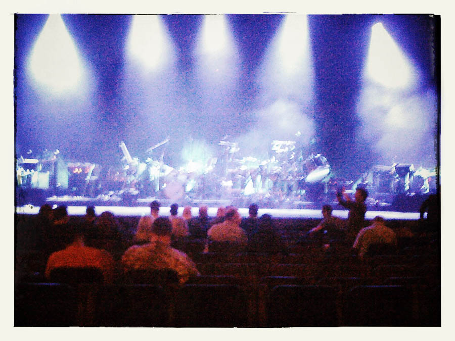 Je suis au parterre, au 11e rang, centré, parfaitement bien placé. La scène est remplie par les instruments des musiciens. Les sièges se remplissent peu à peu. Le concert peut commencer.