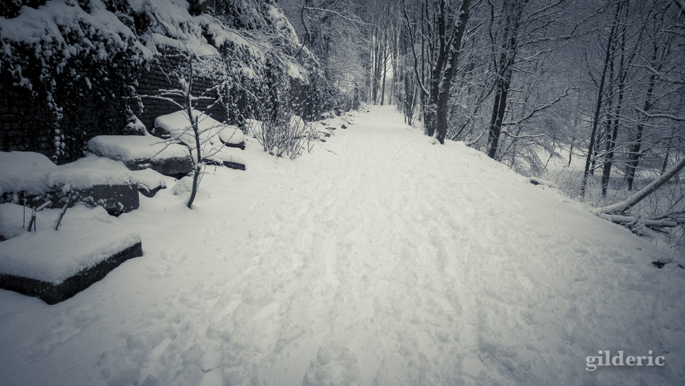 La beauté de la neige suffit souvent à faire une bonne photo. Elle ne suffit pas toujours pour réussir une photo qui sort du lot. Il faut donc soigner la composition et l’ambiance de vos images. Ça commence par choisir un bon point de vue et un lieu qui sort de l’ordinaire (comme ici dans un cimetière). Le traitement de l’image devra être cohérent avec l’ambiance qu’évoque le lieu choisi.