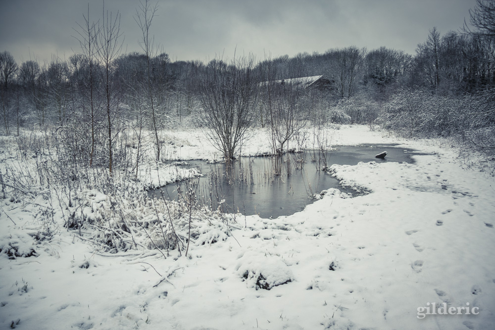 Dans cet exemple, c’est la mare gelée qui structure la composition.