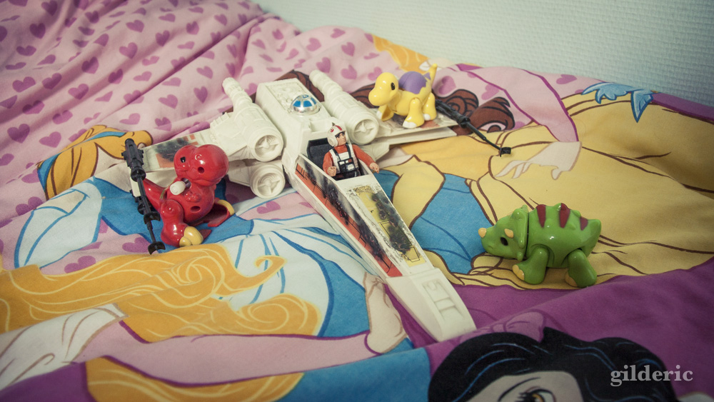 2. J’ai comme l’impression que tu es resté tout seul assez rapidement, les filles se sont lassées 😉 pourtant c’était une très bonne idée. Bon, la couette Princesses, à refaire. Je ne sais pas si tu as de l’avenir dans la photo de jouets (c’est comme la photo culinaire, ça se travaille ) mais pour ce qui est de raconter des histoires, tu es champion !! et ça, ça n’a pas de prix avec les mômes !