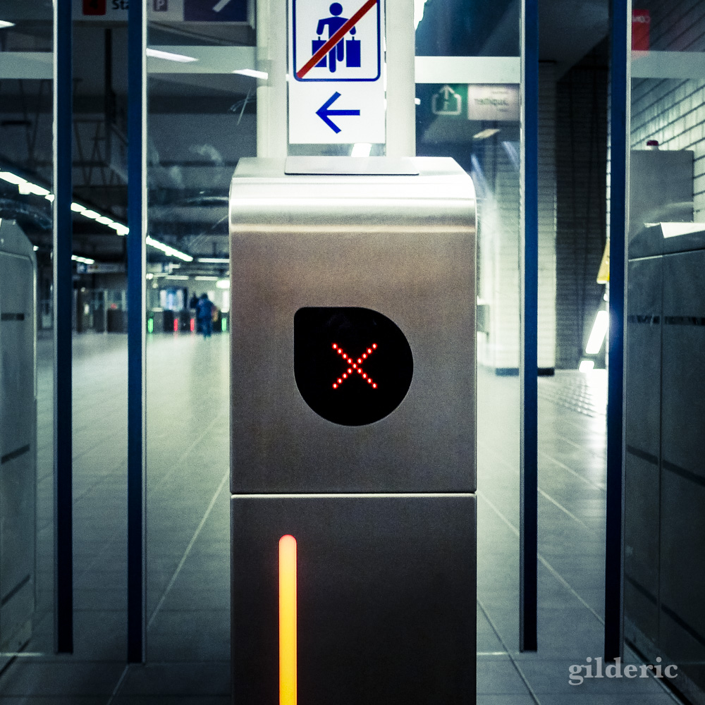 Une porte de métro qui ressemble à un robot (Bruxelles)