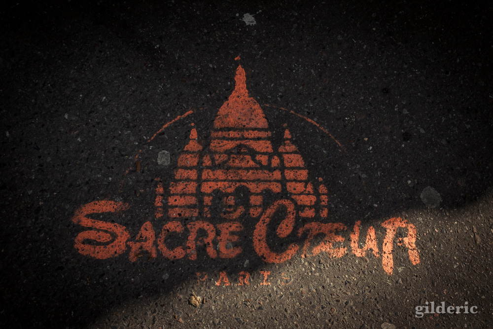 Un amusant graffiti Sacré-Coeur sur le sol de Montmartre à Paris
