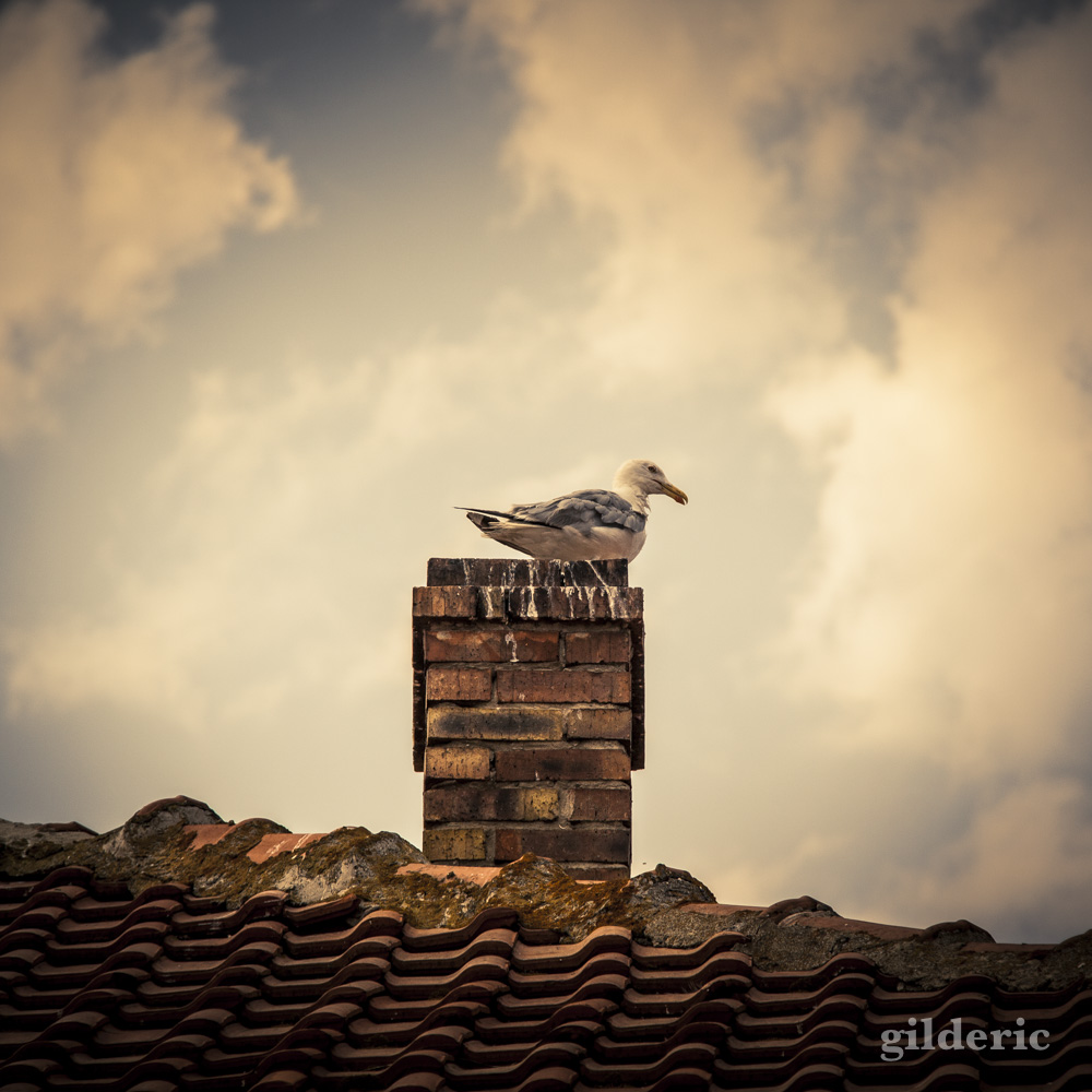 Oiseau sur une cheminée à Nessebar (Bulgarie)