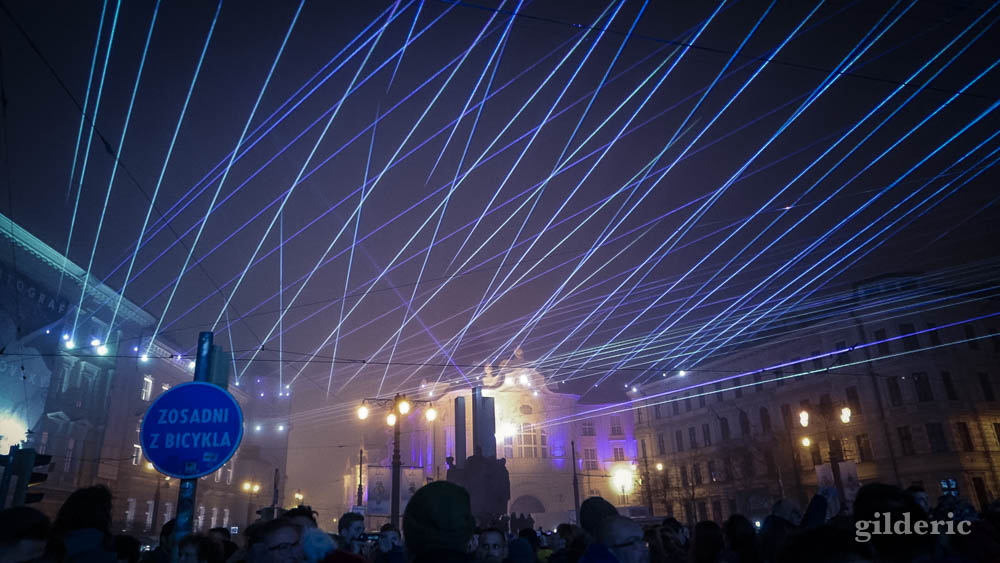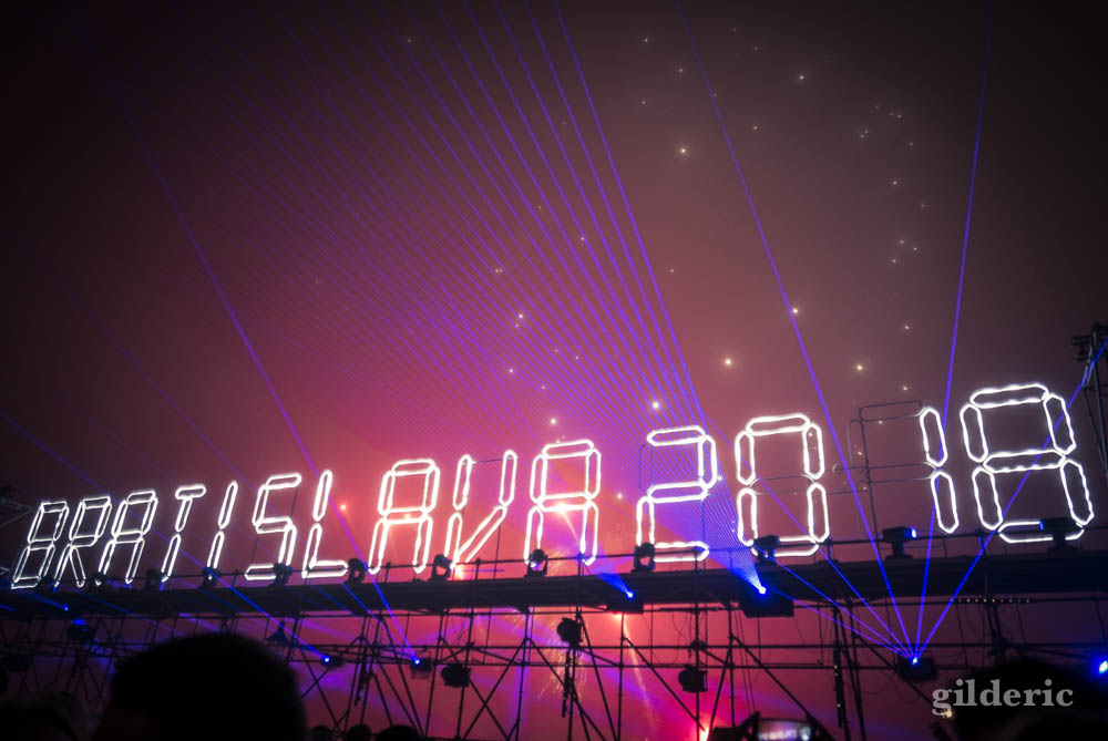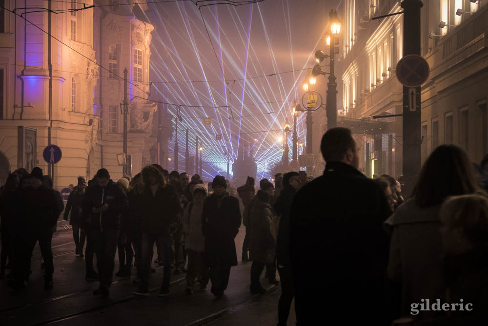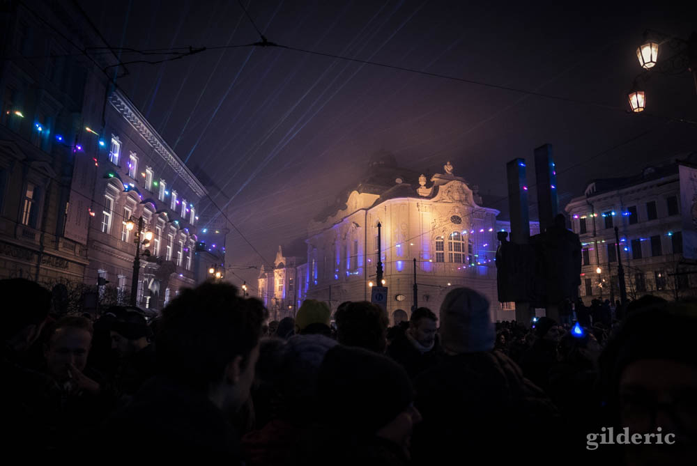 Les lumières des lasers baignaient les bâtiments centenaires, créant une ambiance des plus singulières. Dans la nuit glacée, les Slovaques fêtaient le Nouvel An joyeusement.