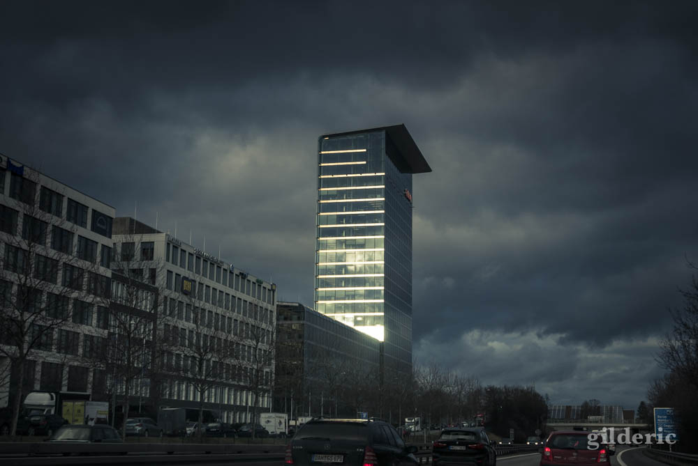 Nous avons quitté Munich, après le lunch. Sur l’autoroute, en quittant Munich, nous avons eu un aperçu de la face plus moderne de la ville.