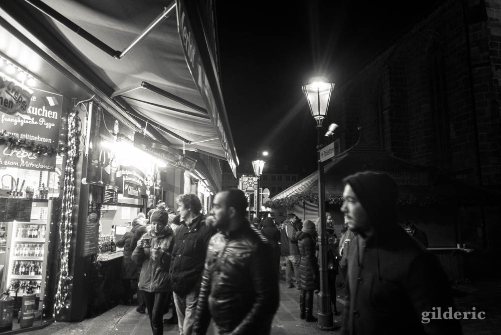 En décembre, le soir tombe tôt. Quand nous sommes arrivés à Nuremberg en fin d’après-midi, il faisait déjà nuit. Nous avons déposé les bagages à l’hôtel, juste en dehors de la vieille ville, près du château. Nous avions un peu de temps devant nous avant d’aller manger et nous avons décidé de partir à la découverte de la ville en allant vers le restaurant.
