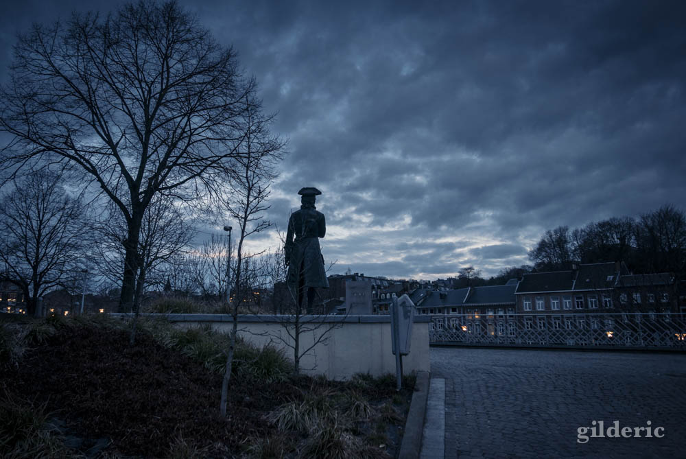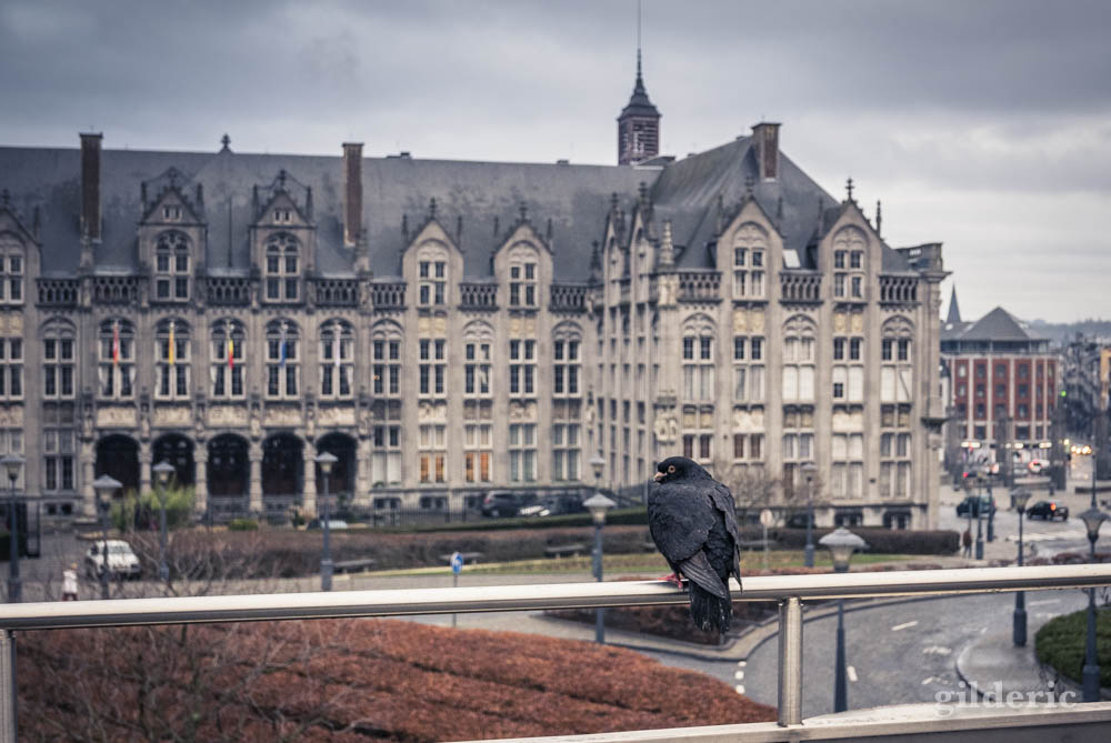 Je m’arrête souvent au milieu de la passerelle pour prendre une photo du Palais des Princes-Evêques. Ce matin-là, un touriste un peu particulier squattait les lieux. L’oiseau semblait perdu dans sa contemplation du monument. Puis, il a tourné la tête et s’est envolé…