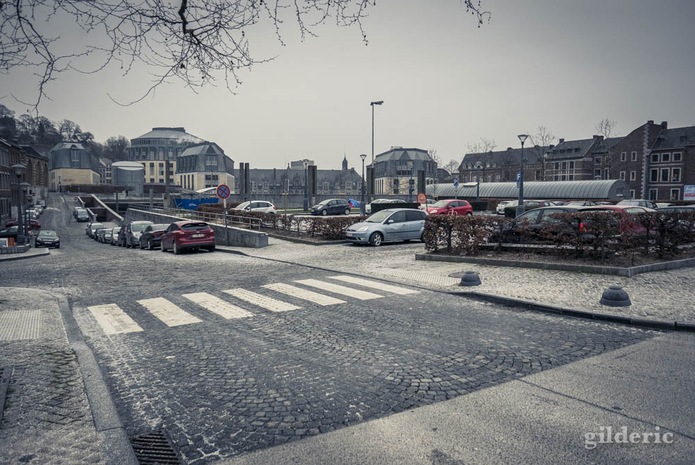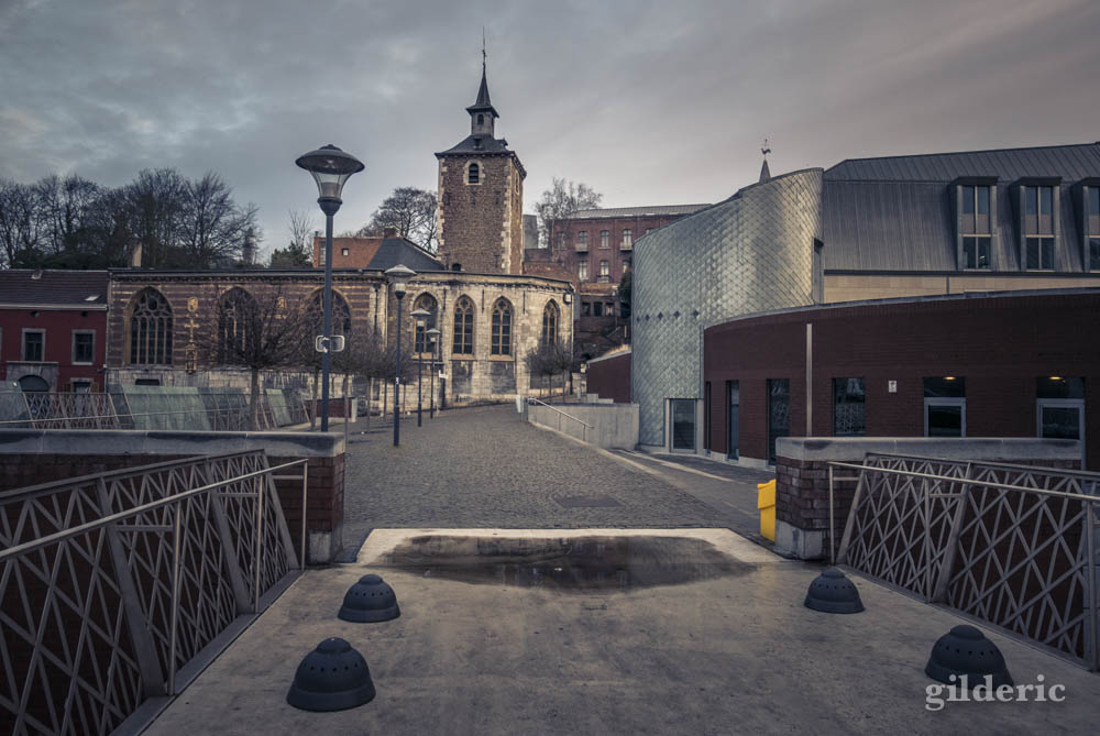 Je continue mon chemin vers l’église Saint-Servais, coincée entre la Gare du Palais et les extensions du Palais de justice.